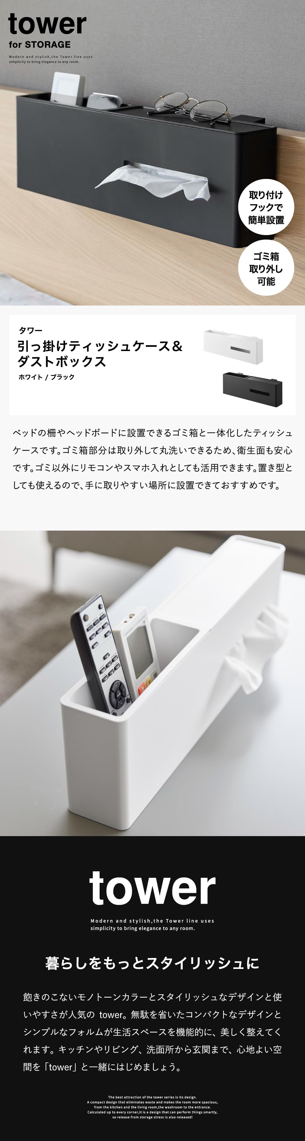 引っ掛けティッシュケース&ダストボックス タワー
