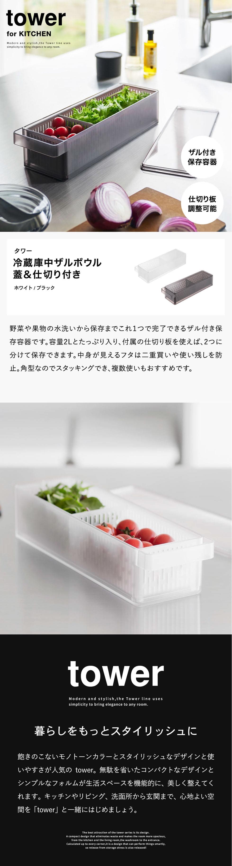 | 冷蔵庫中ザルボウル タワー 蓋&仕切り付き |