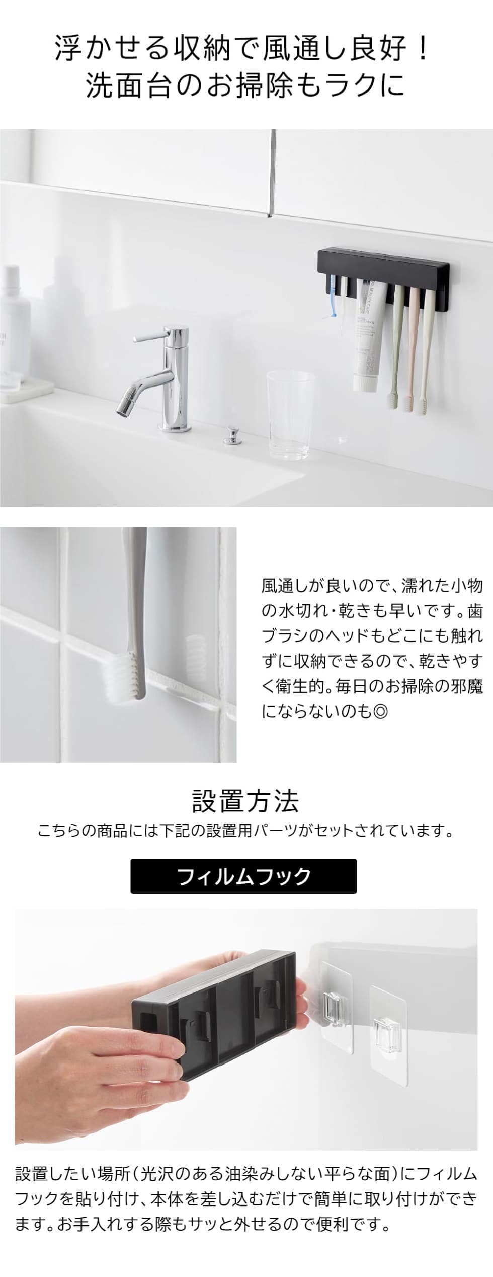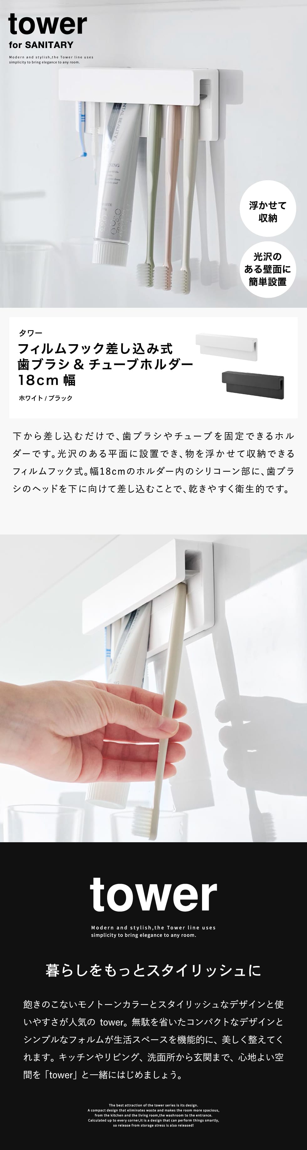 フィルムフック差し込み式歯ブラシ&チューブホルダー タワー W18 山崎実業 公式 tower 1497 1498 ホワイト ブラック