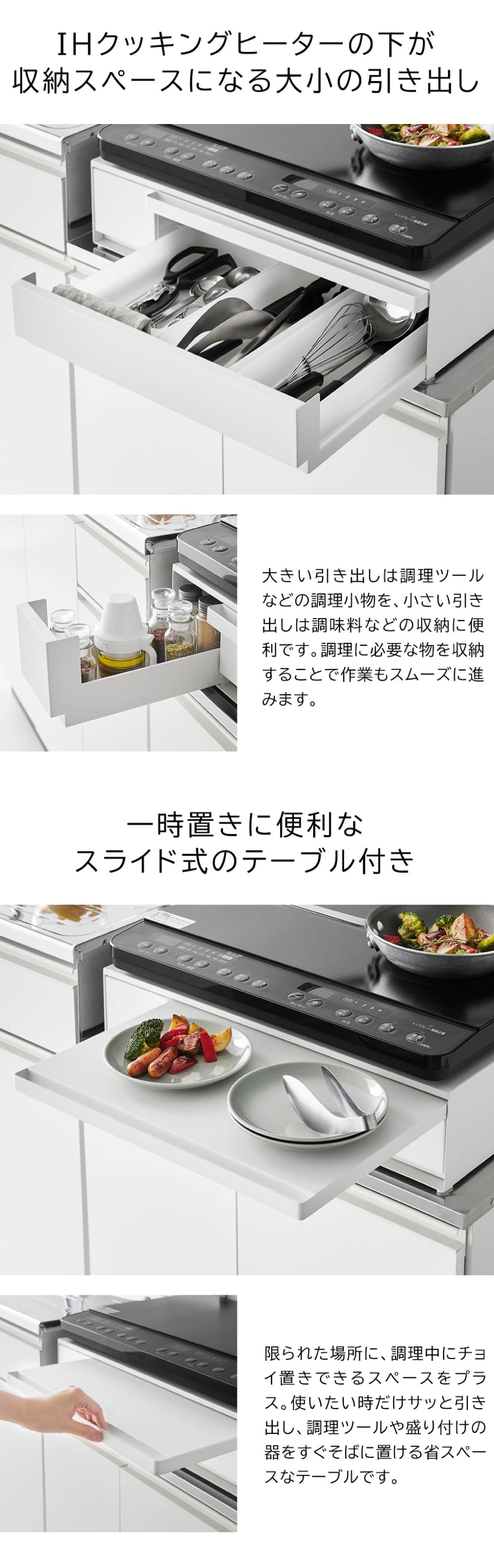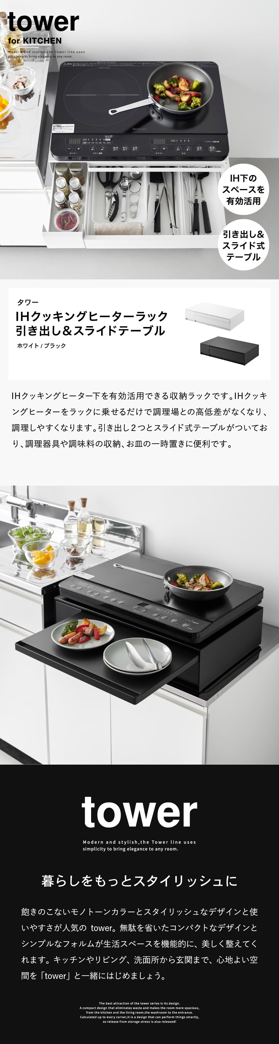 | IHクッキングヒーターラック タワー 引き出し&スライドテーブル |