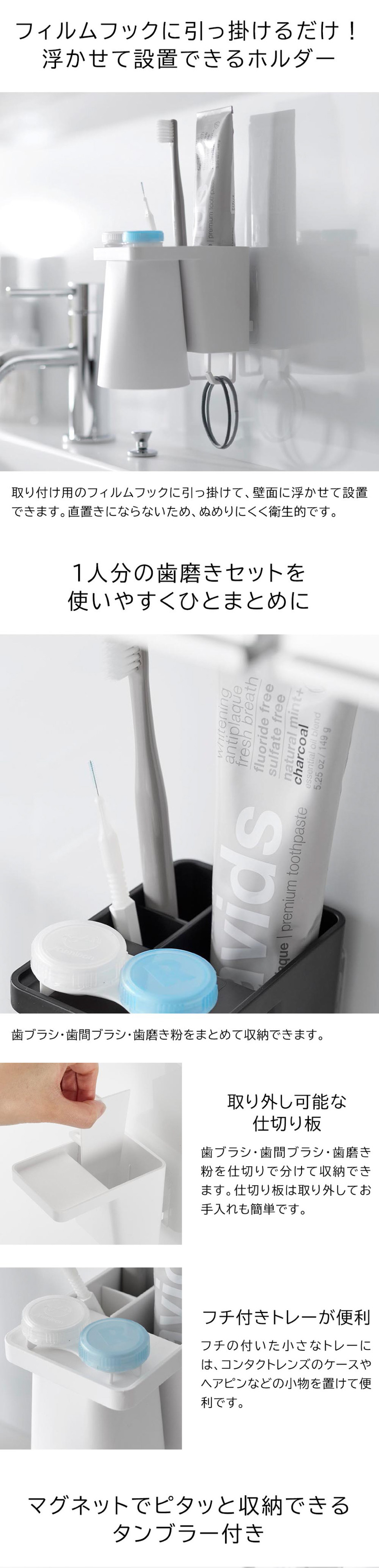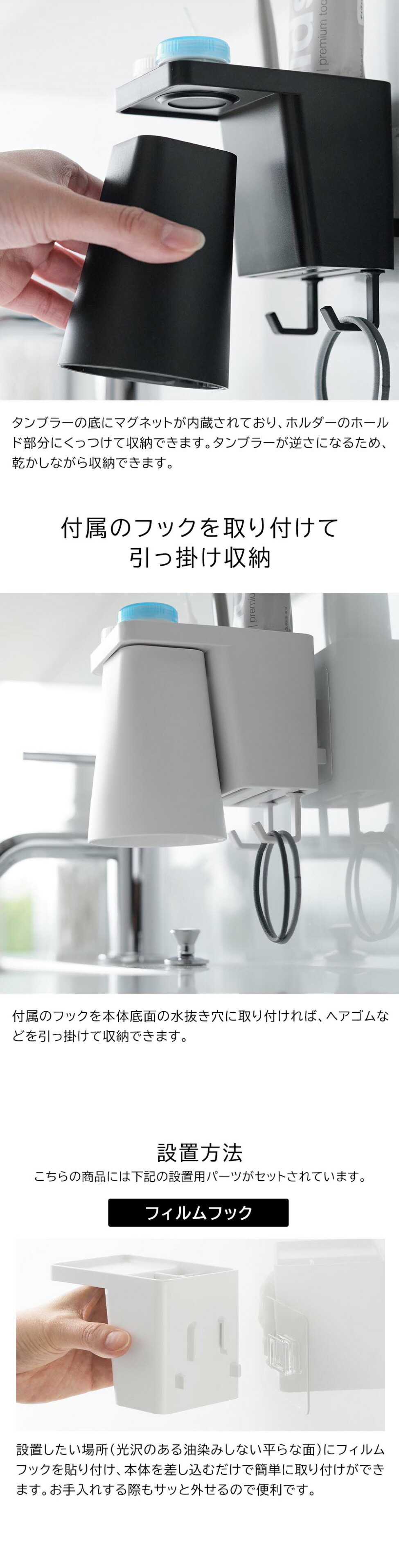 洗面パネルや浴室にフィルムフックで簡単取付できるホルダー 山崎実業 フィルムフック1人用歯ブラシホルダー&マグネットタンブラー タワー tower コップ 歯ブラシホルダー