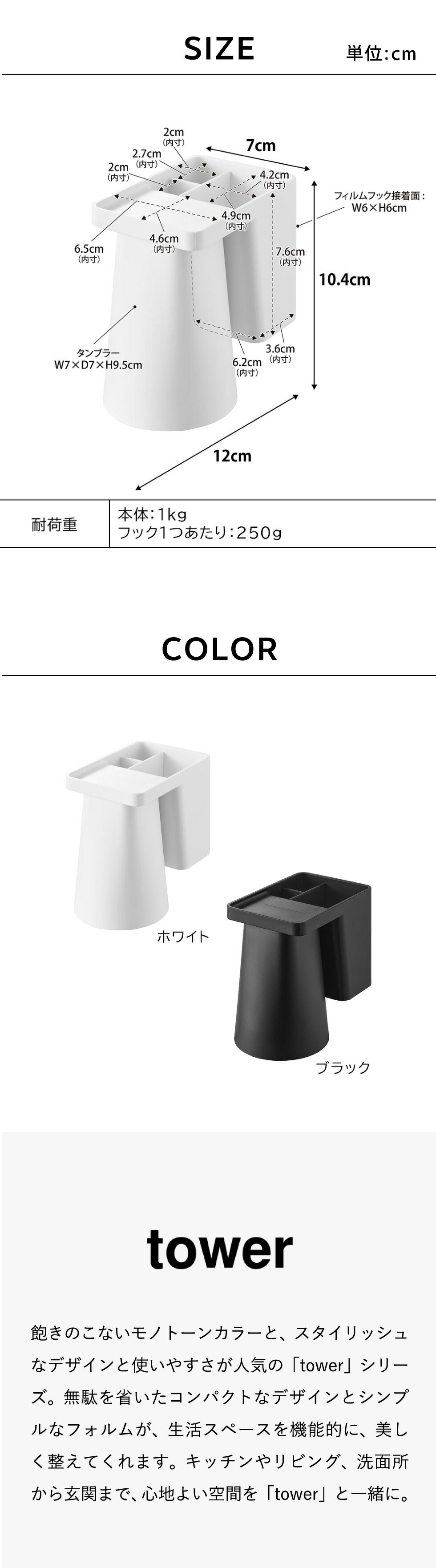 フィルムフック1人用歯ブラシホルダー&マグネットタンブラー タワー