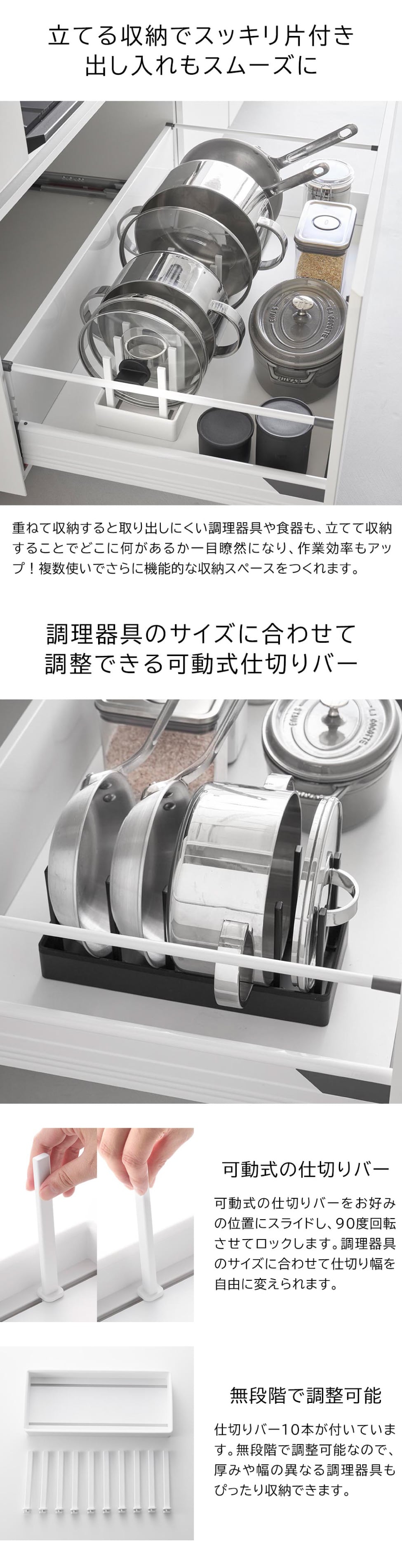 シンク下幅調節鍋蓋&フライパン収納スタンド タワー W32