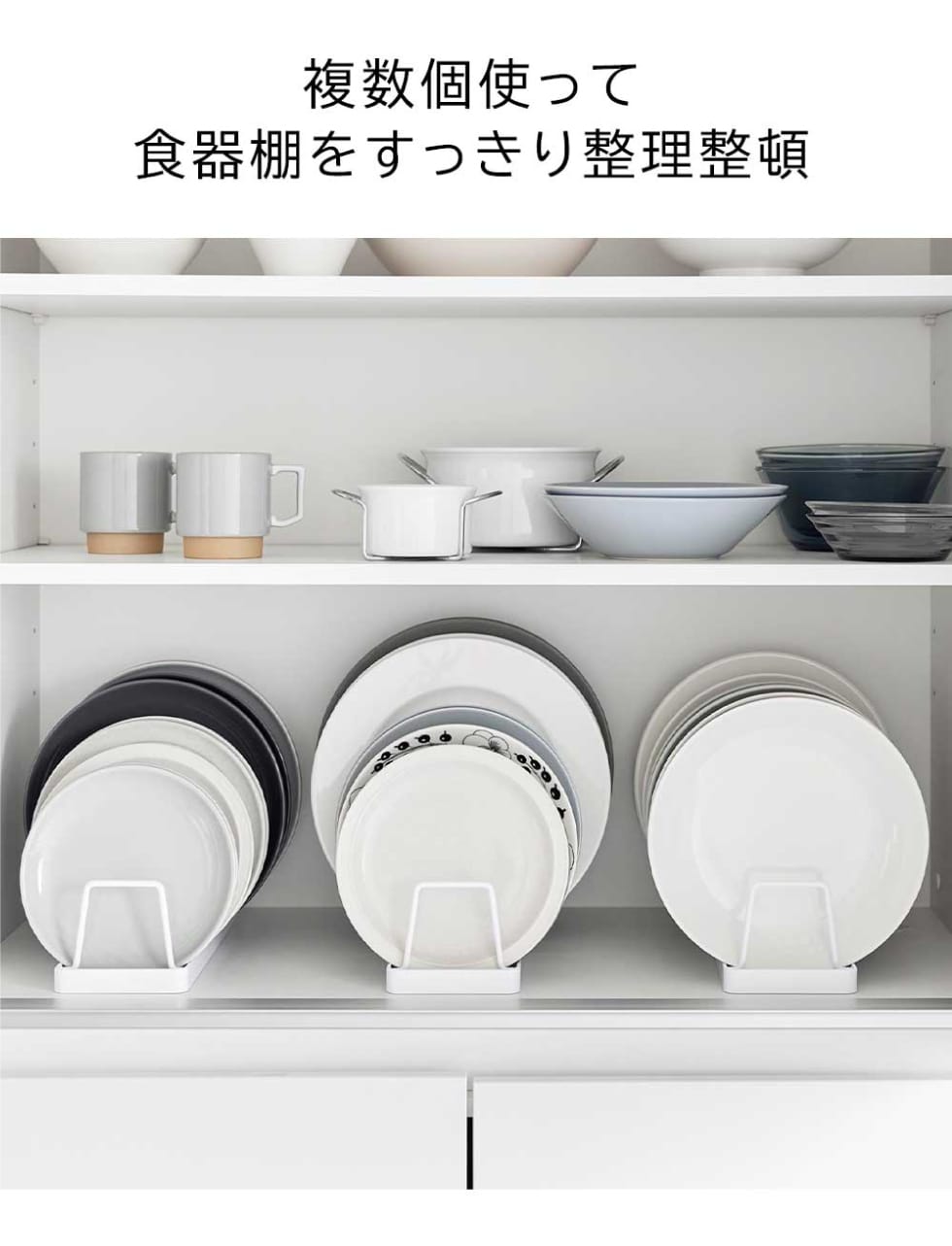 お皿を立てて収納できるスタンドです。片手で取りやすく、戸棚や引き出し中のお皿収納におすすめです。
