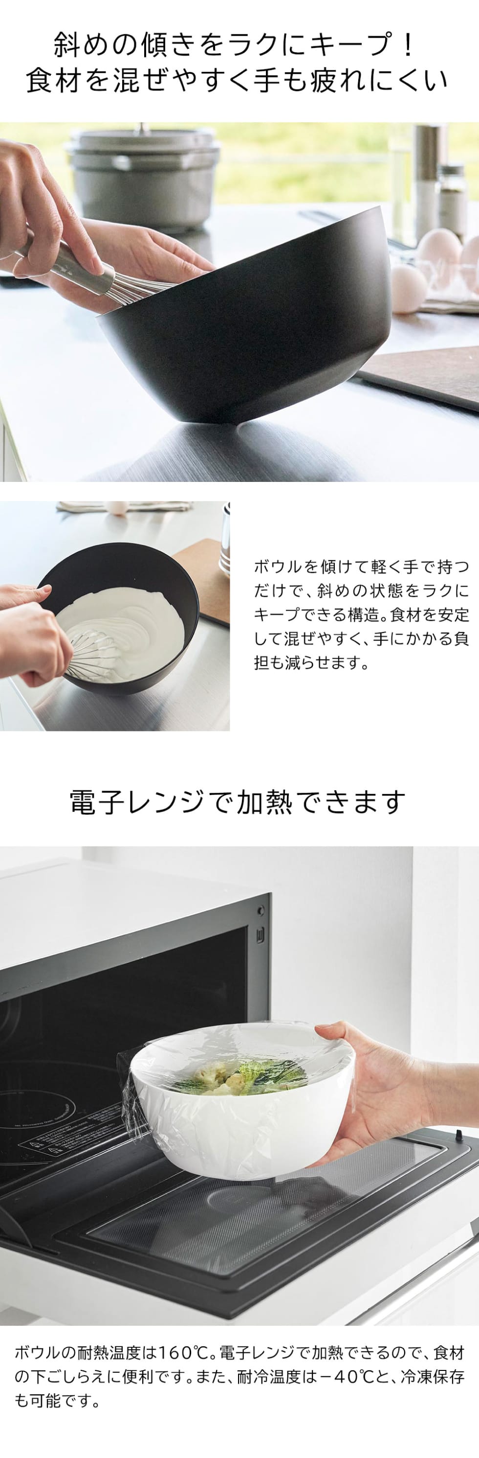 傾けて混ぜやすい調理ボウル タワー M 電子レンジ対応