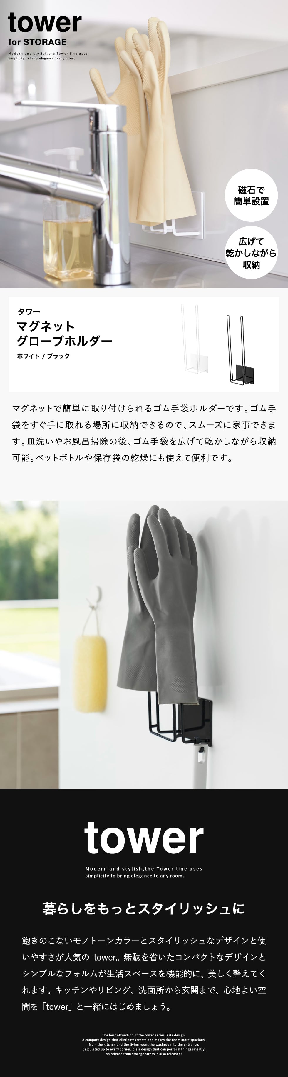 マグネットグローブホルダータワー 山崎実業 公式 tower 1522 1523 ホワイト ブラック