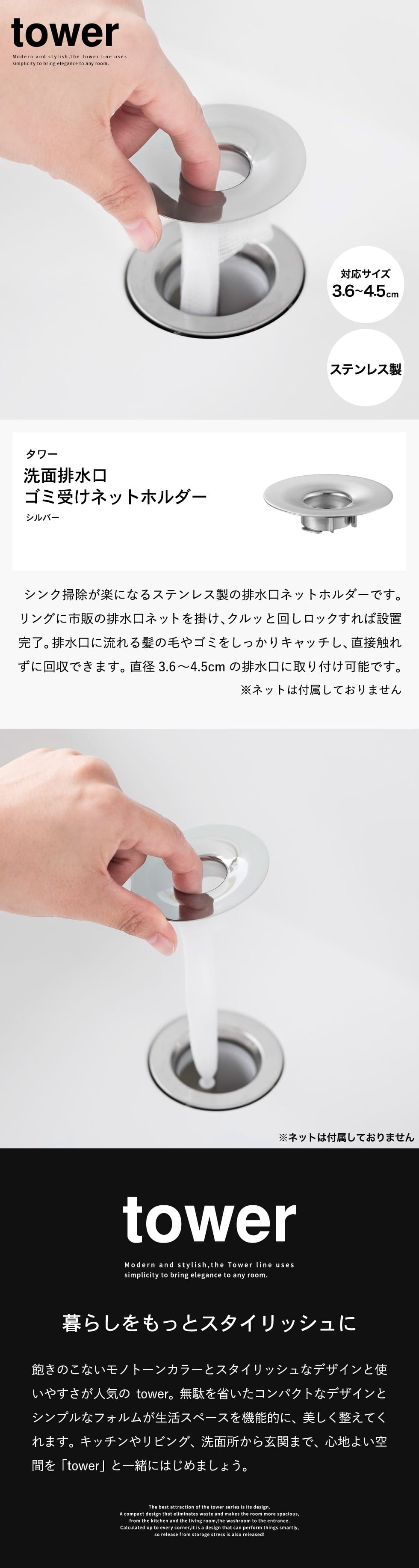 | 洗面排水口ゴミ受けネットホルダー タワー |