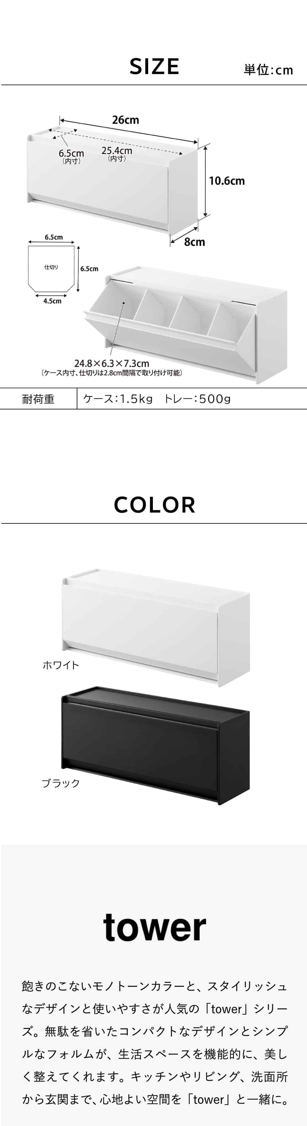 ホワイトとブラックを中心とした飽きのこないモノトーンカラーと、どんなインテリアにもスッと馴染むスタイリッシュなデザイン。そして、とことんシンプルながら、より豊かな暮らしを提案するアイデアがたくさん詰まった、使いやすいアイテムが人気です。無駄を省いたコンパクトなデザインと、シンプルなフォルムが生活スペースを機能的に、美しく整えてくれます。towerのアイテムをライン使いすれば、すっきりとした統一感が生まれ、お洒落でシックな雰囲気を演出します。キッチンやリビング、洗面所から玄関まで揃えたくなるtowerシリーズで、毎日の暮らしを彩る心地よい空間を。