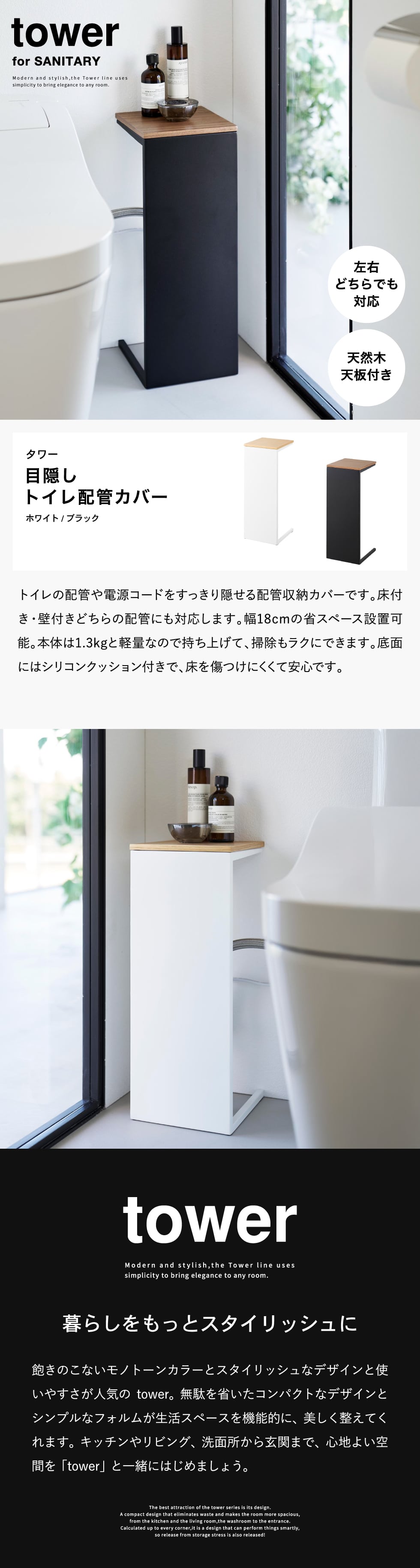 目隠しトイレ配管カバー タワー 山崎実業 公式 tower 5223 5224 ホワイト ブラック / トイレ収納 電源コード 送料無料