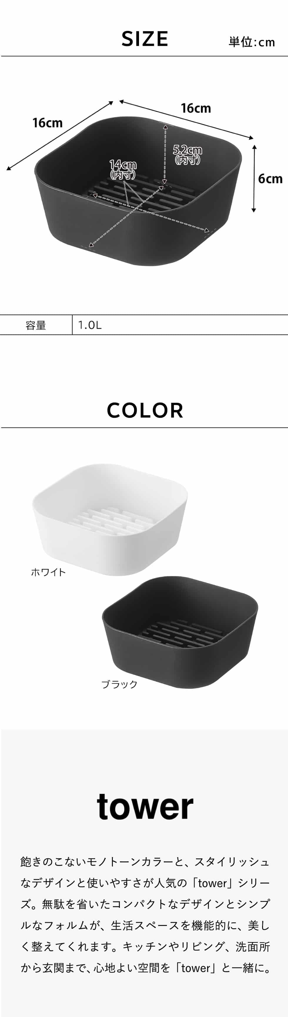 ホワイトとブラックを中心とした飽きのこないモノトーンカラーと、どんなインテリアにもスッと馴染むスタイリッシュなデザイン。そして、とことんシンプルながら、より豊かな暮らしを提案するアイデアがたくさん詰まった、使いやすいアイテムが人気です。無駄を省いたコンパクトなデザインと、シンプルなフォルムが生活スペースを機能的に、美しく整えてくれます。towerのアイテムをライン使いすれば、すっきりとした統一感が生まれ、お洒落でシックな雰囲気を演出します。キッチンやリビング、洗面所から玄関まで揃えたくなるtowerシリーズで、毎日の暮らしを彩る心地よい空間を。