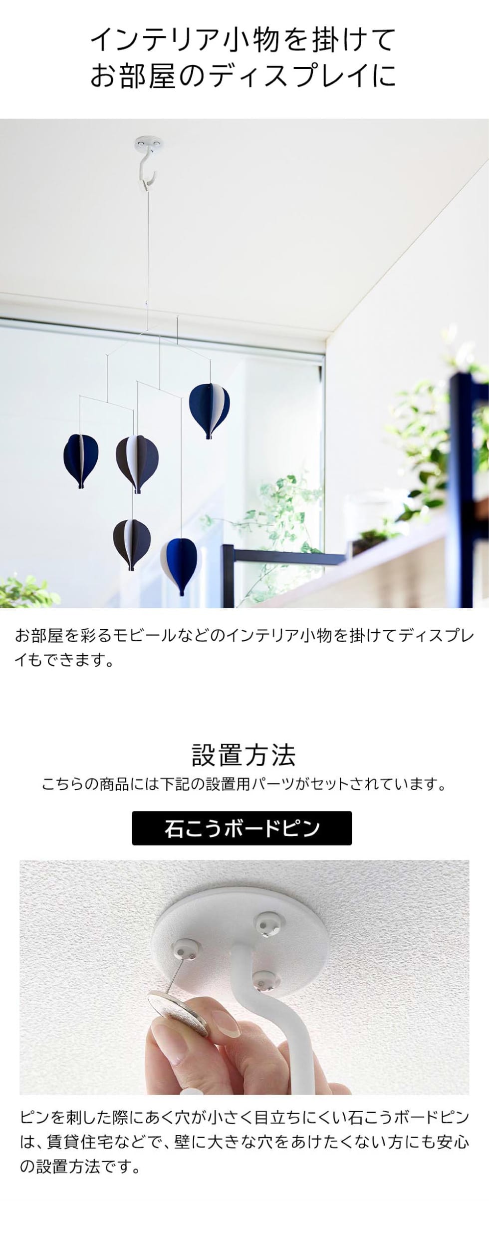 石こうボードピンで天井に簡単取り付け。観葉植物を吊るして飾れるフックです。モビールの吊り下げにもおすすめ。