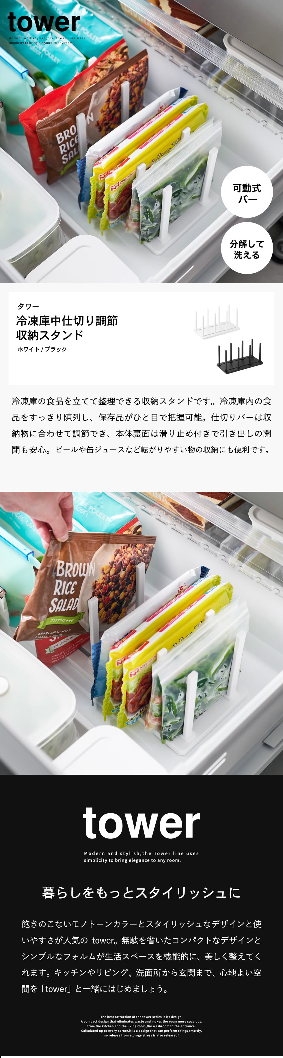 | 冷凍庫中仕切り調節収納スタンド タワー W27 |