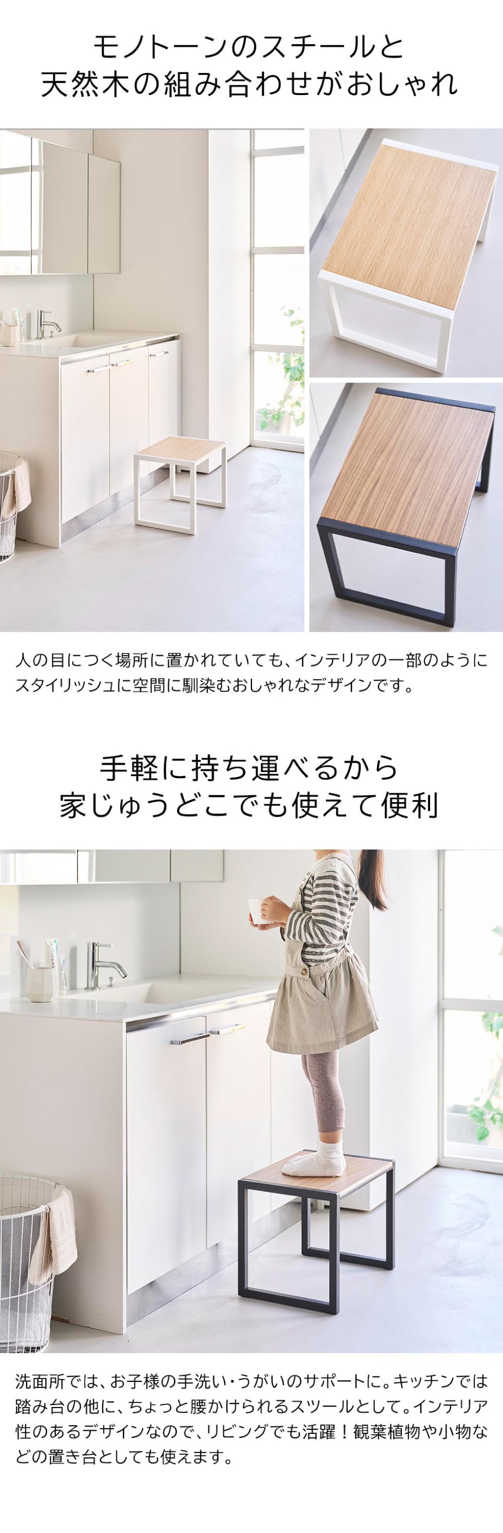 高い場所での作業がしやすい高さ30cmの踏み台。足を乗せるスペースが広く安定感があります。スチールのフレームと木製の天板がスタイリッシュでおしゃれで、スツールとしての使用も◎