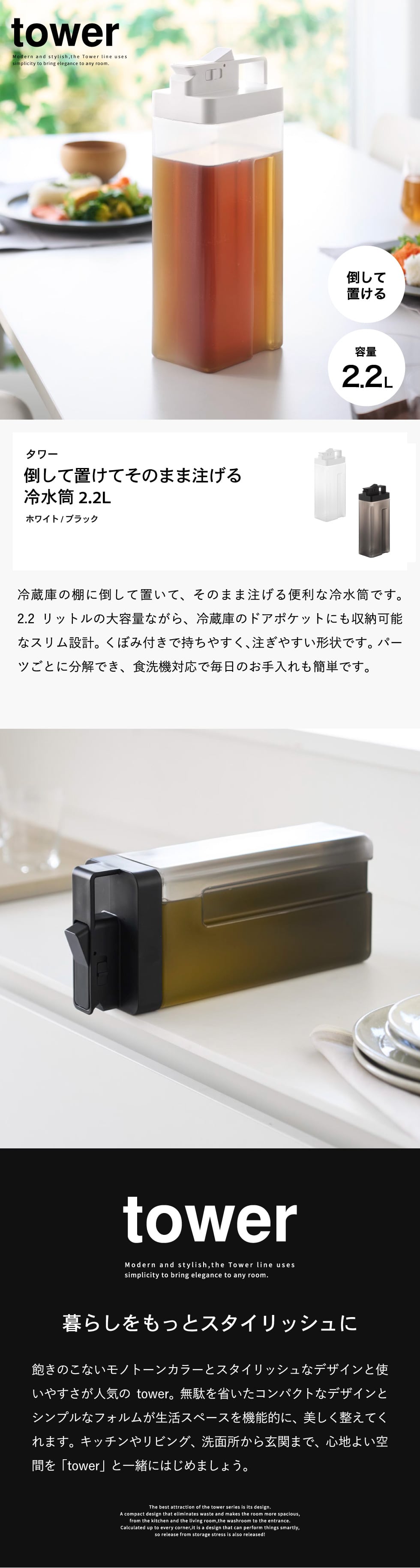 倒して置けてそのまま注げる冷水筒 タワー 2.2L 山崎実業 公式 tower 10029 10030 ホワイト ブラック 送料無料