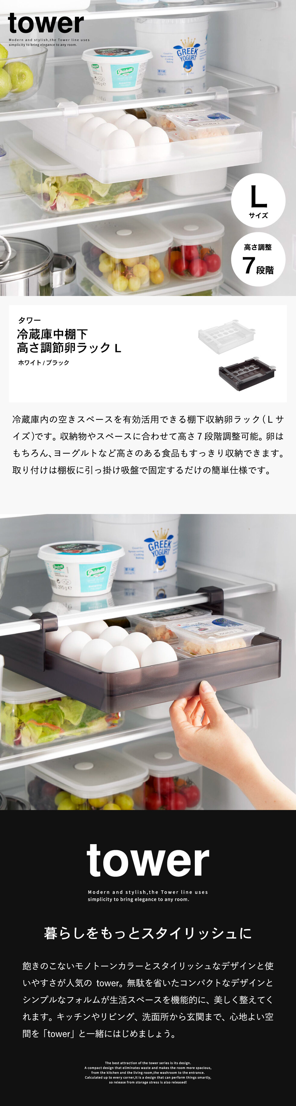 | 冷蔵庫中棚下高さ調節卵ラック タワー L |