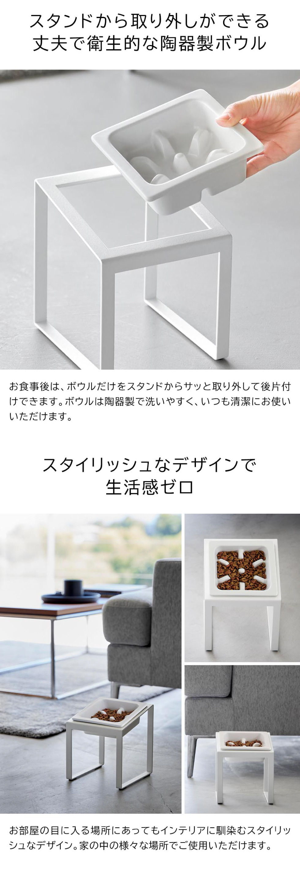 品質表示 スタンド:スチール(粉体塗装) クッション:シリコーンゴム 早食い防止ボウル:陶器 |