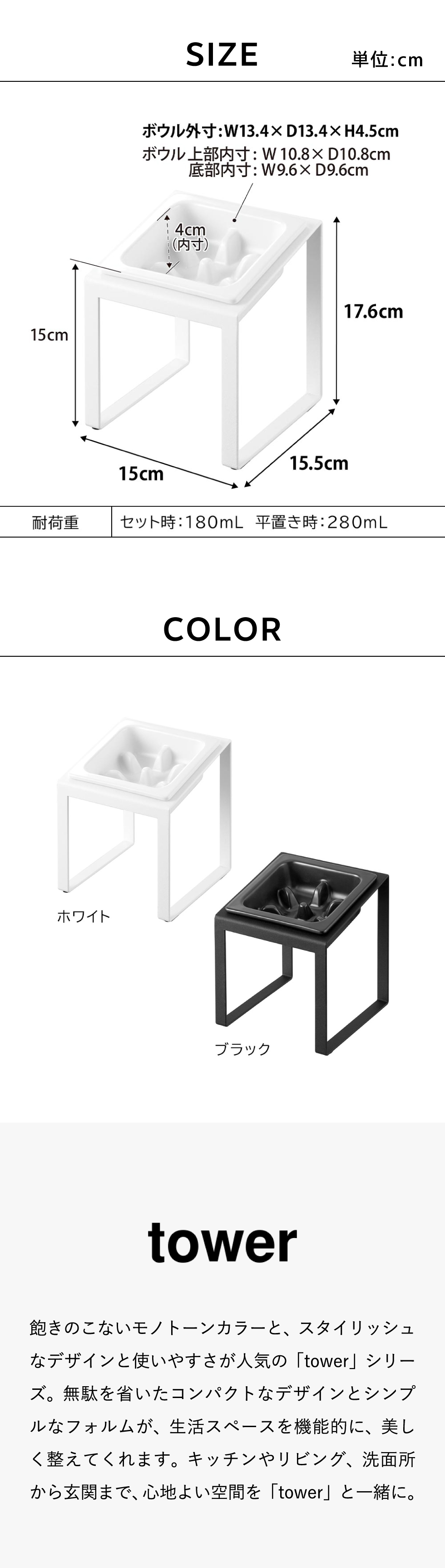 | 早食い防止ペットフードボウルスタンド タワー 斜めハイタイプ |