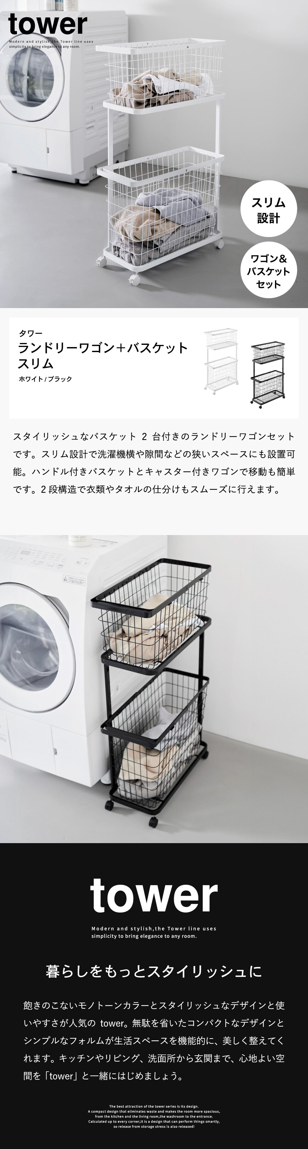| ランドリーワゴン+バスケット タワー スリム |