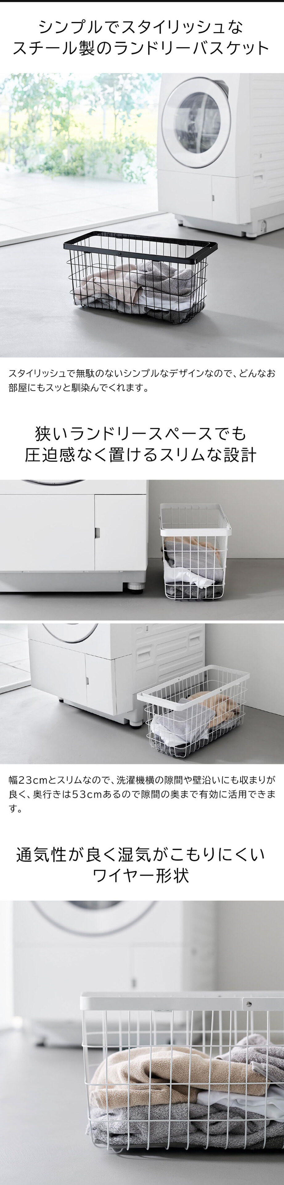 シンプルでスタイリッシュなランドリーワイヤーバスケットMサイズです。スリムなので省スペースに収納できます。