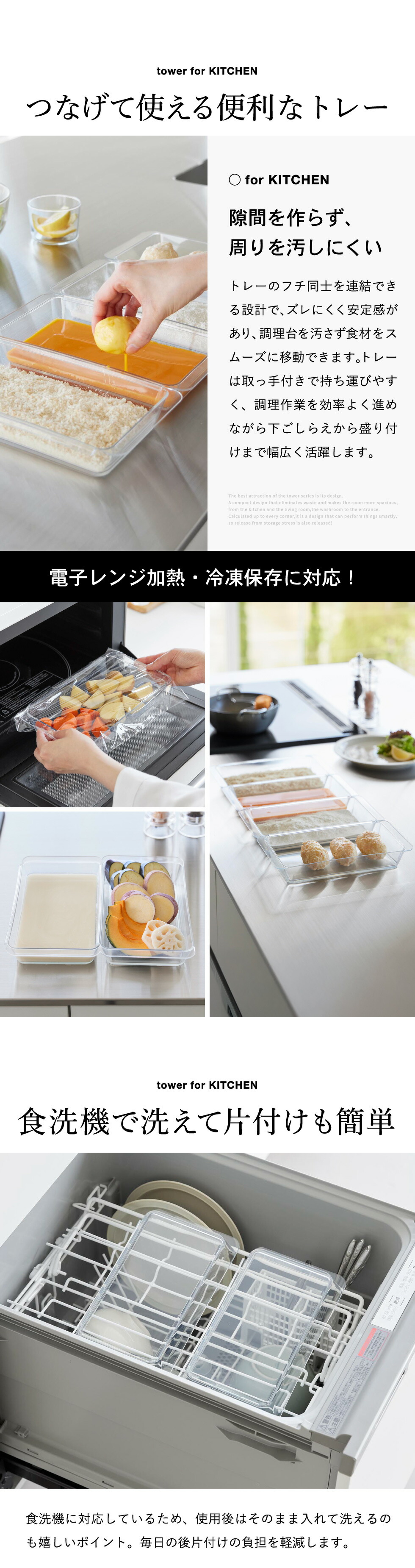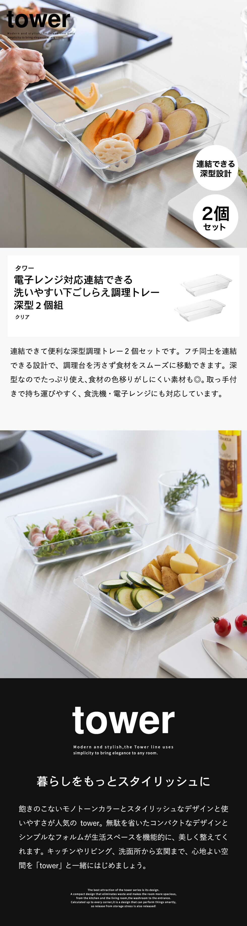 電子レンジ対応連結できる洗いやすい下ごしらえ調理トレー タワー 深型 2個組