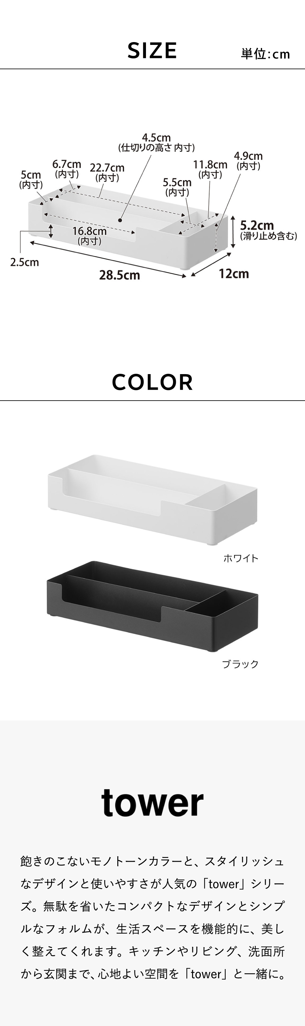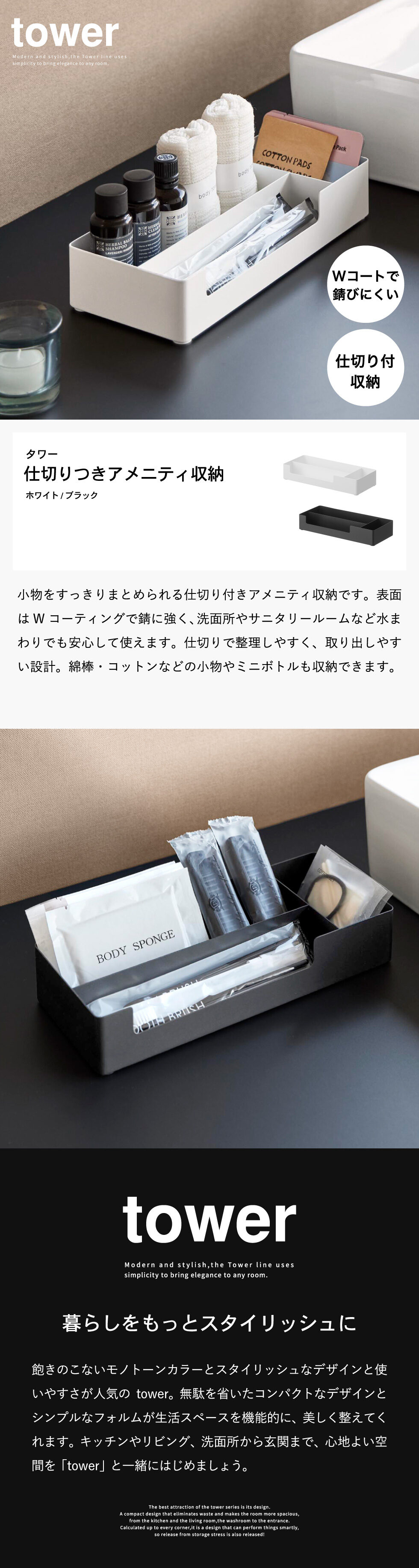 仕切り付きアメニティ収納 タワー 山崎実業 公式 tower 10338 10339 ホワイト ブラック 送料無料