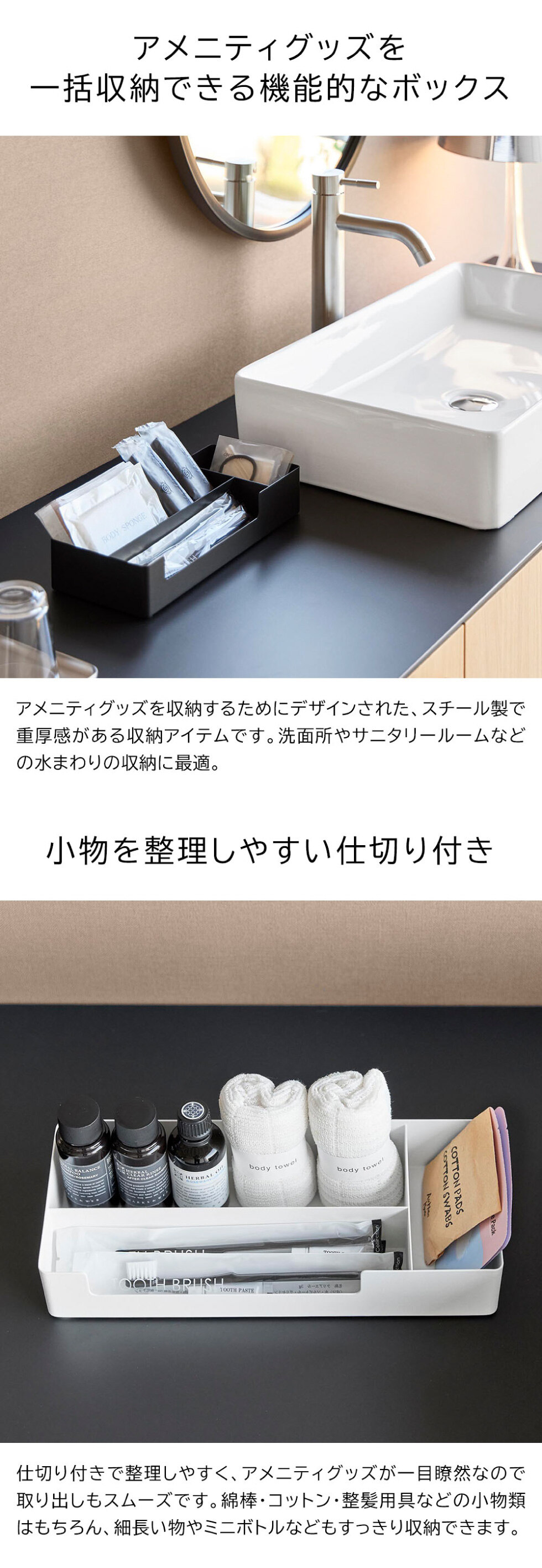 アメニティグッズを一括収納!スチール製の仕切り付き収納ボックス。ホテルライクな空間を演出できます 小物整理 仕切り付き 業務用 ホテル用品 旅館用品