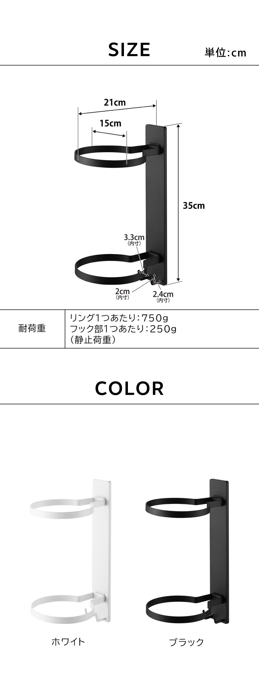 品質表示 本体・リング×2:スチール(粉体塗装) 取り付けベース×2:ABS樹脂 |