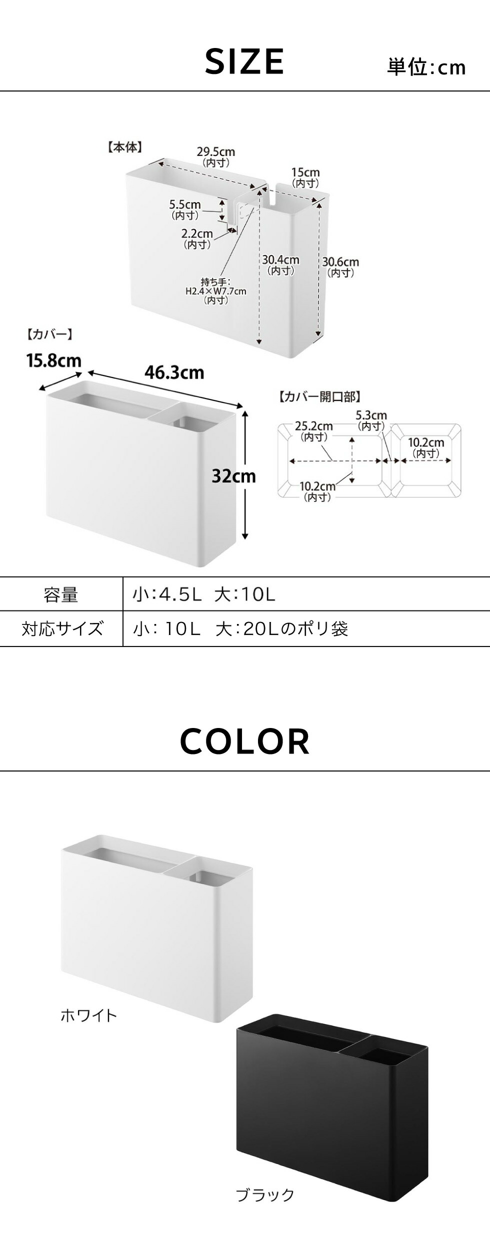 山崎実業 tower スーパー・コンビニ弁当がそのまま入る分別ダストボックス タワー 公式 10354 10355 ホワイト ブラック 送料無料