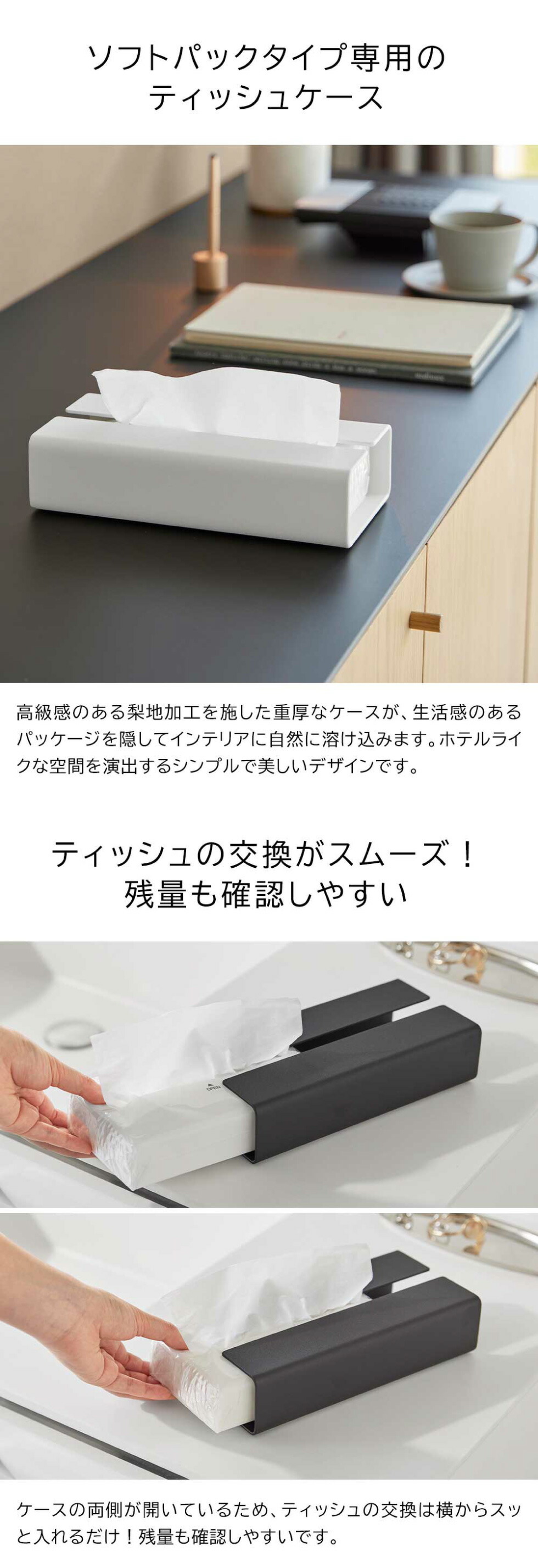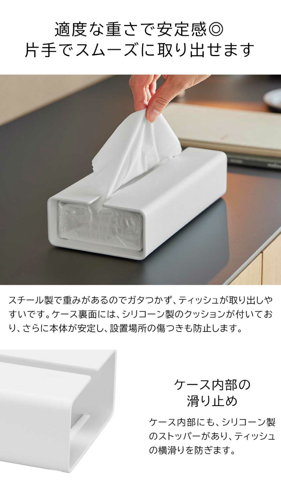 ソフトパックタイプに対応したティッシュケースです。残量も確認しやすく、入れ替えもスムーズ。丈夫で重みのあるスチール製で、安定感があり片手でも取り出しやすく便利です。
