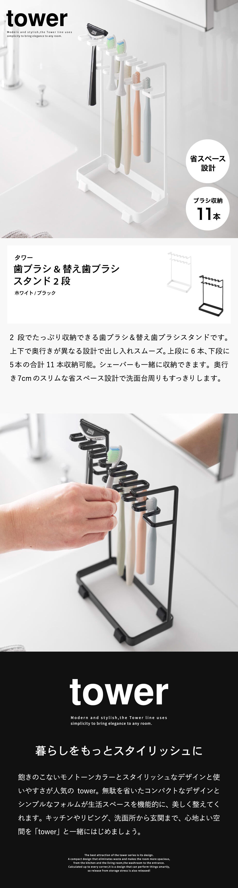 | 歯ブラシ&替え歯ブラシスタンド タワー 2段 |