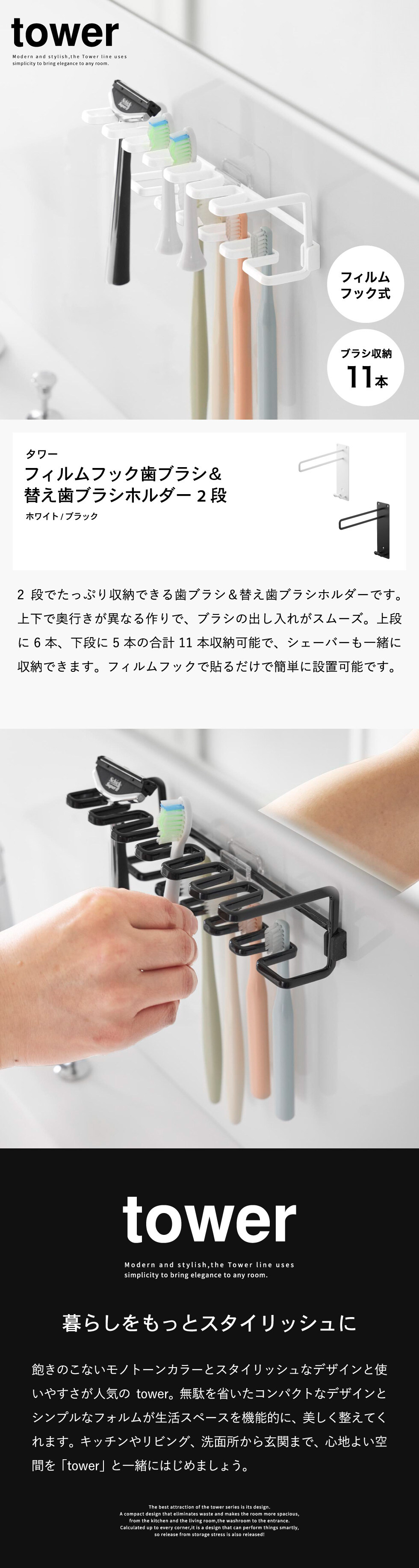 | フィルムフック歯ブラシ&替え歯ブラシホルダー タワー 2段 |
