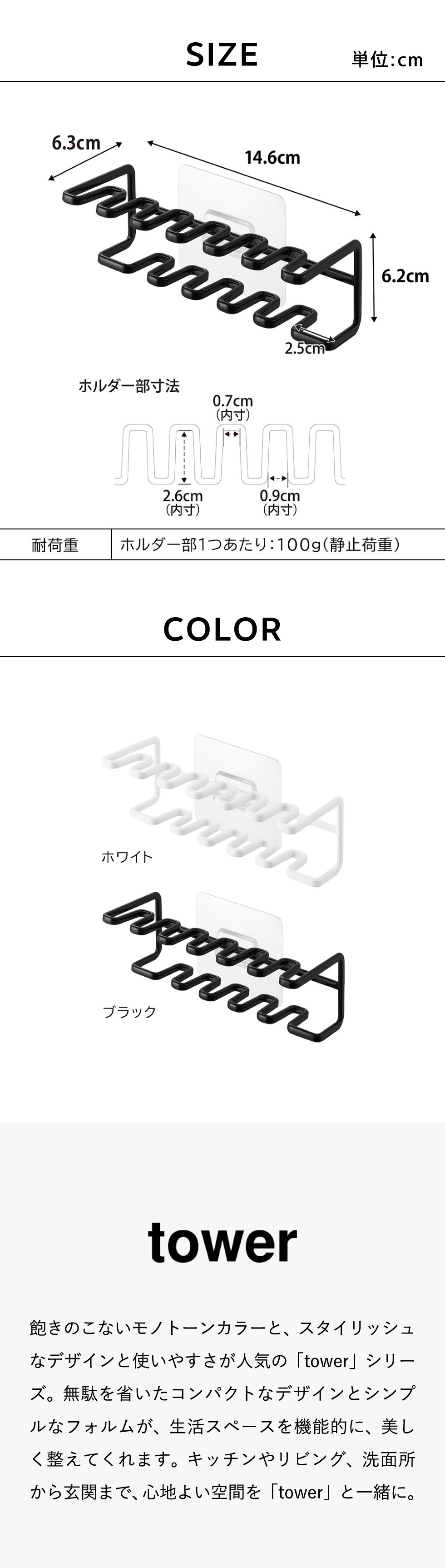 耐荷重 ホルダー部1つあたり:100g(静止荷重) |