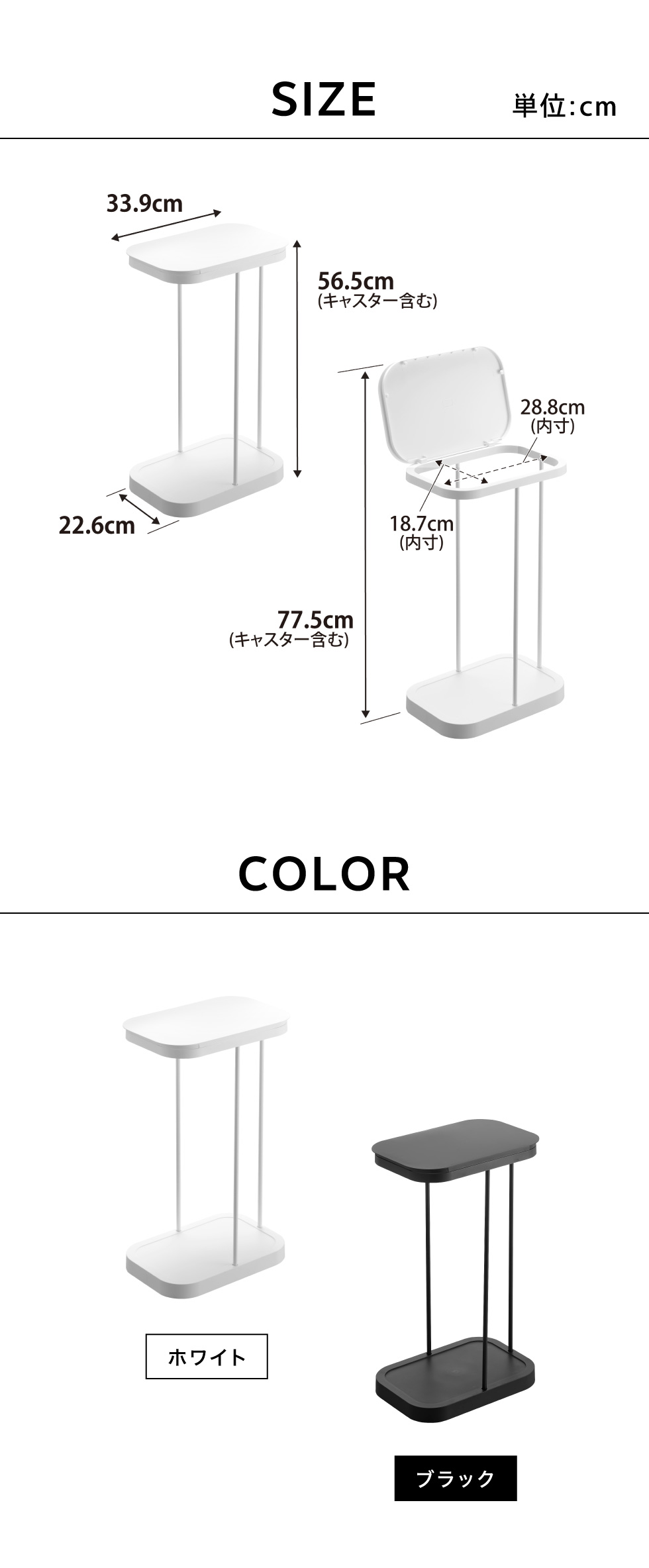 ●商品サイズ: W22.6×D33.9×H56.5cm、蓋開口時最大:H77.5cm