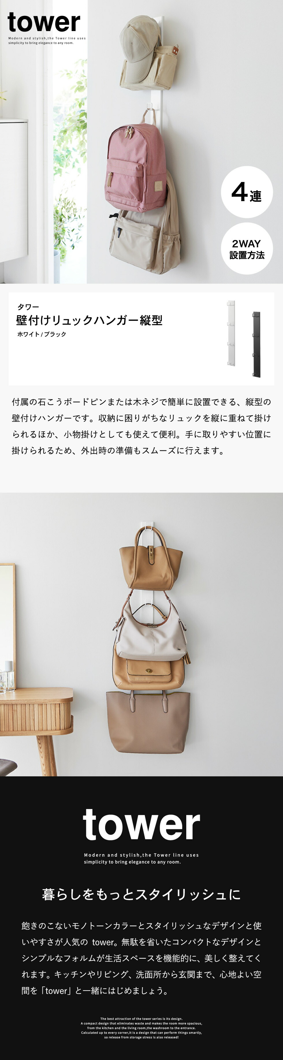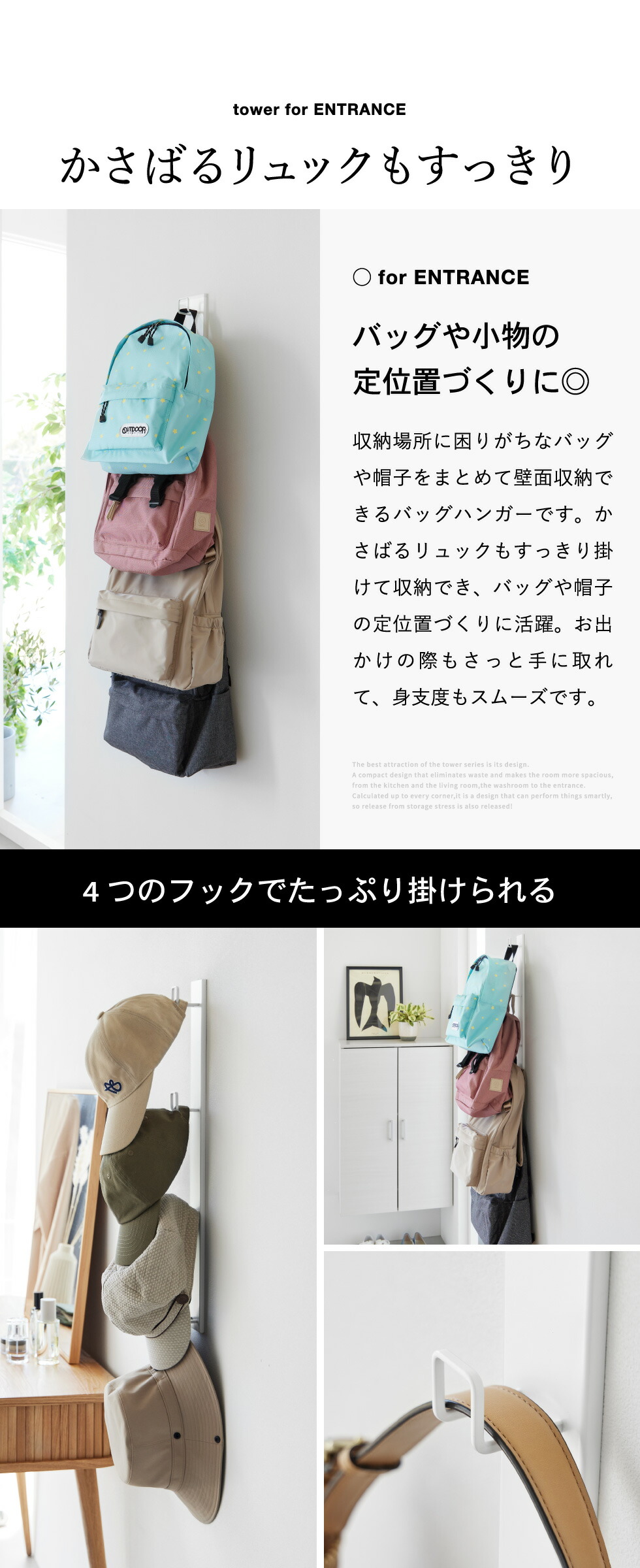 壁付けリュックハンガー タワー 縦型