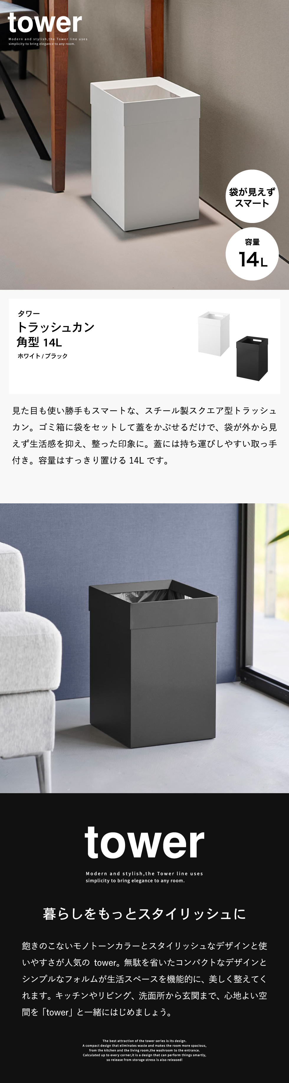 トラッシュカン タワー 角型 14L