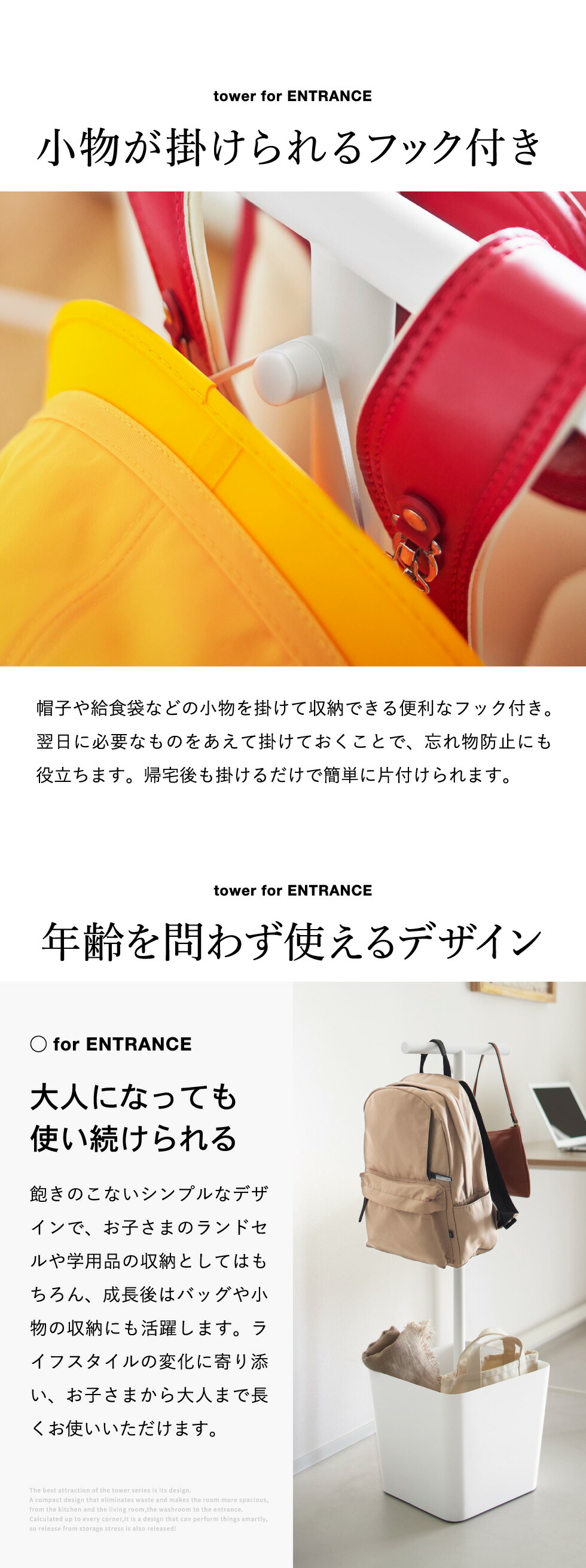 「ただいま」の一歩先で、すべてのモノに定位置を。 ランドセル、教科書、体操服、帽子、水筒―― バラバラになりがちな学用品を、ひとつの場所にまとめて収納できるランドセルスタンドです。