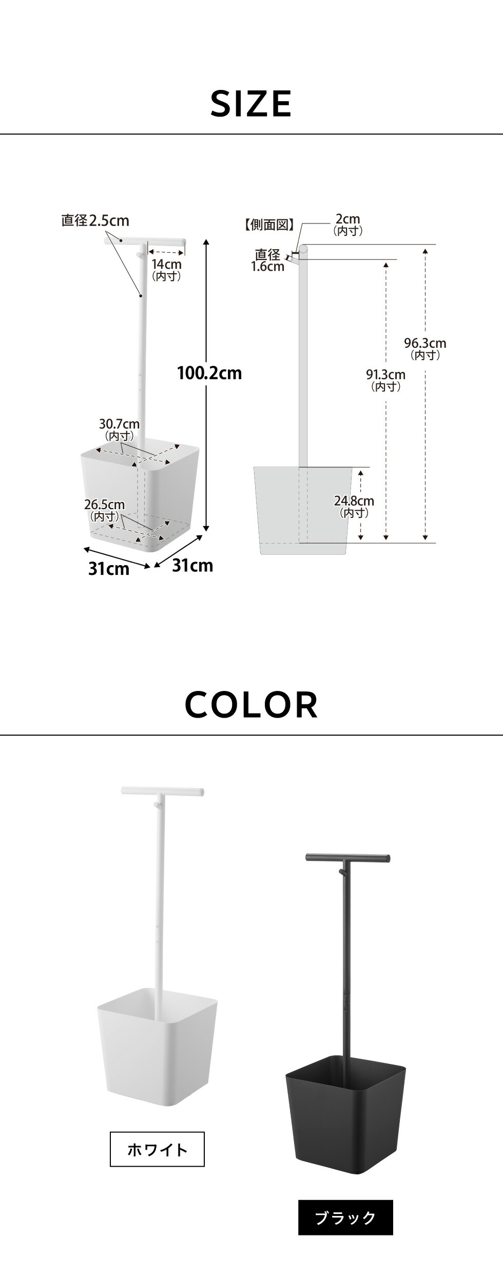 ●内寸サイズ:約 ハンガー片側あたり:W14×D2.5×H2.5cm バスケット底部:W26.5×D26.5cm 開口部:W30.7×D30.7cm H24.8cm フック:W1.6×D2cm