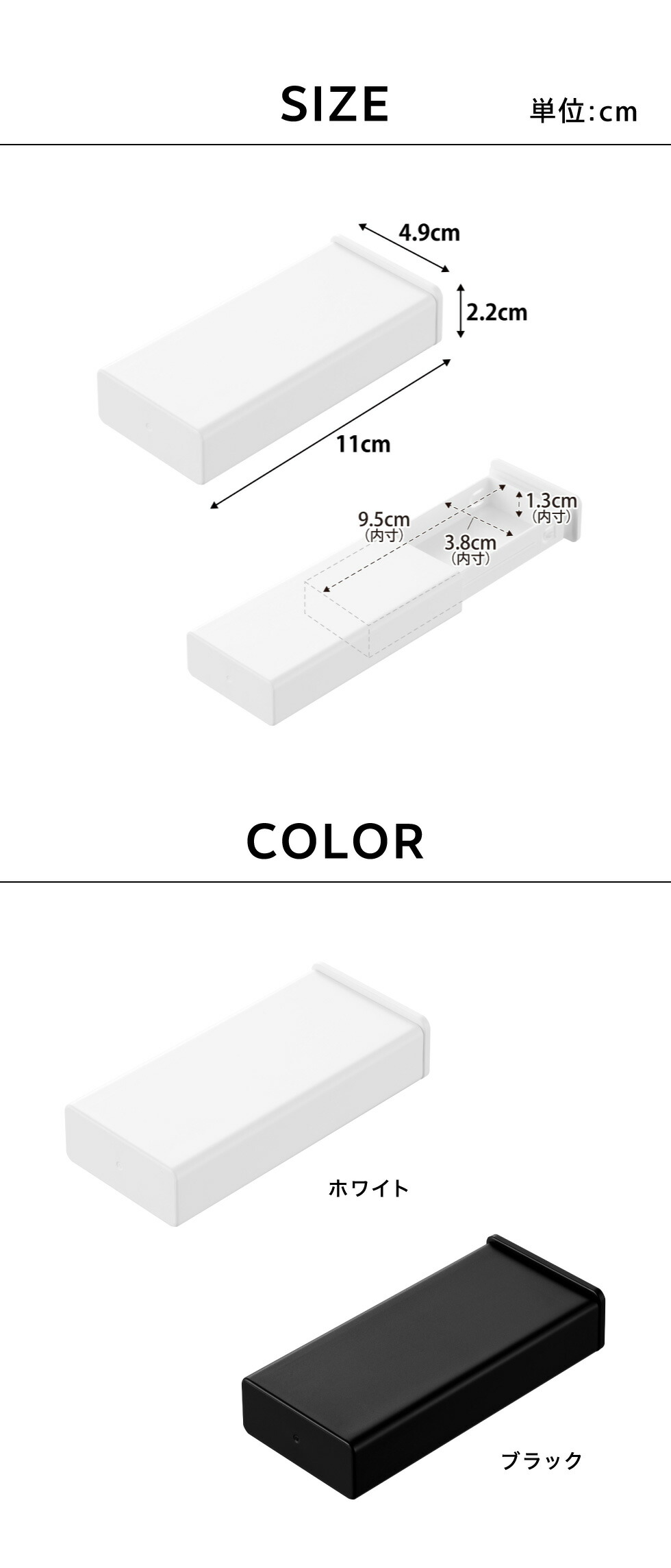 ●内寸サイズ: 収納部:W9.5×D3.8×H1.3cm