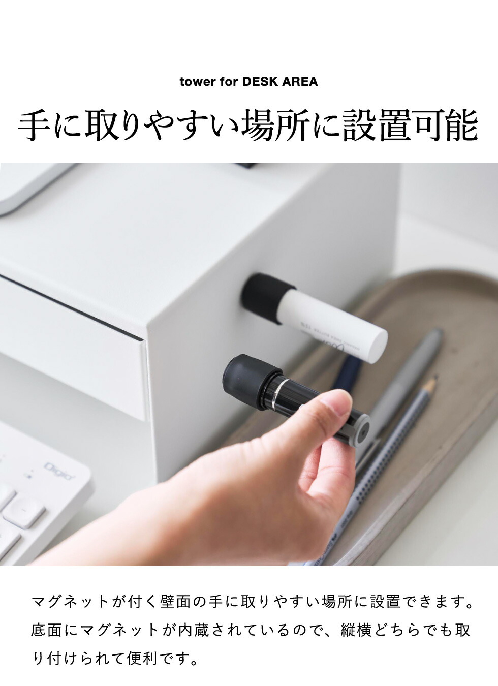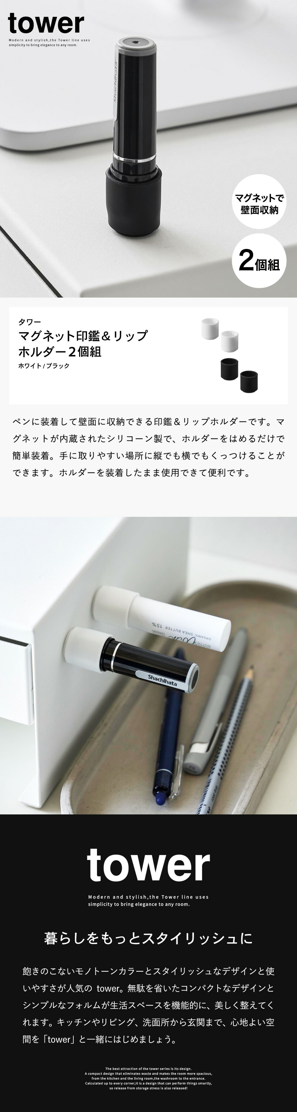 マグネット印鑑&リップホルダー タワー 2個組 山崎実業 tower 公式 10731 10732 ホワイト ブラック