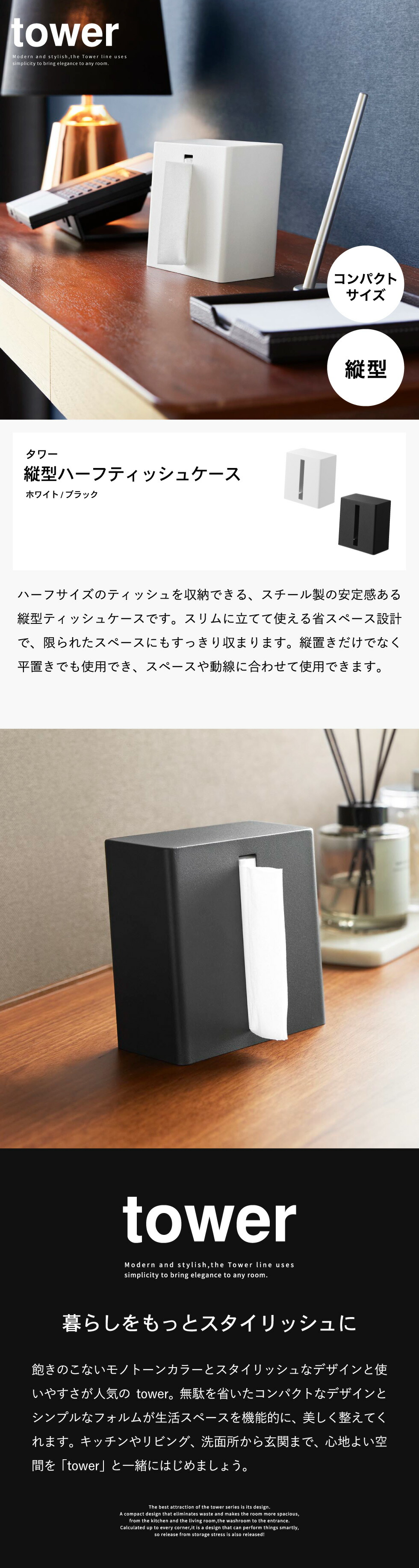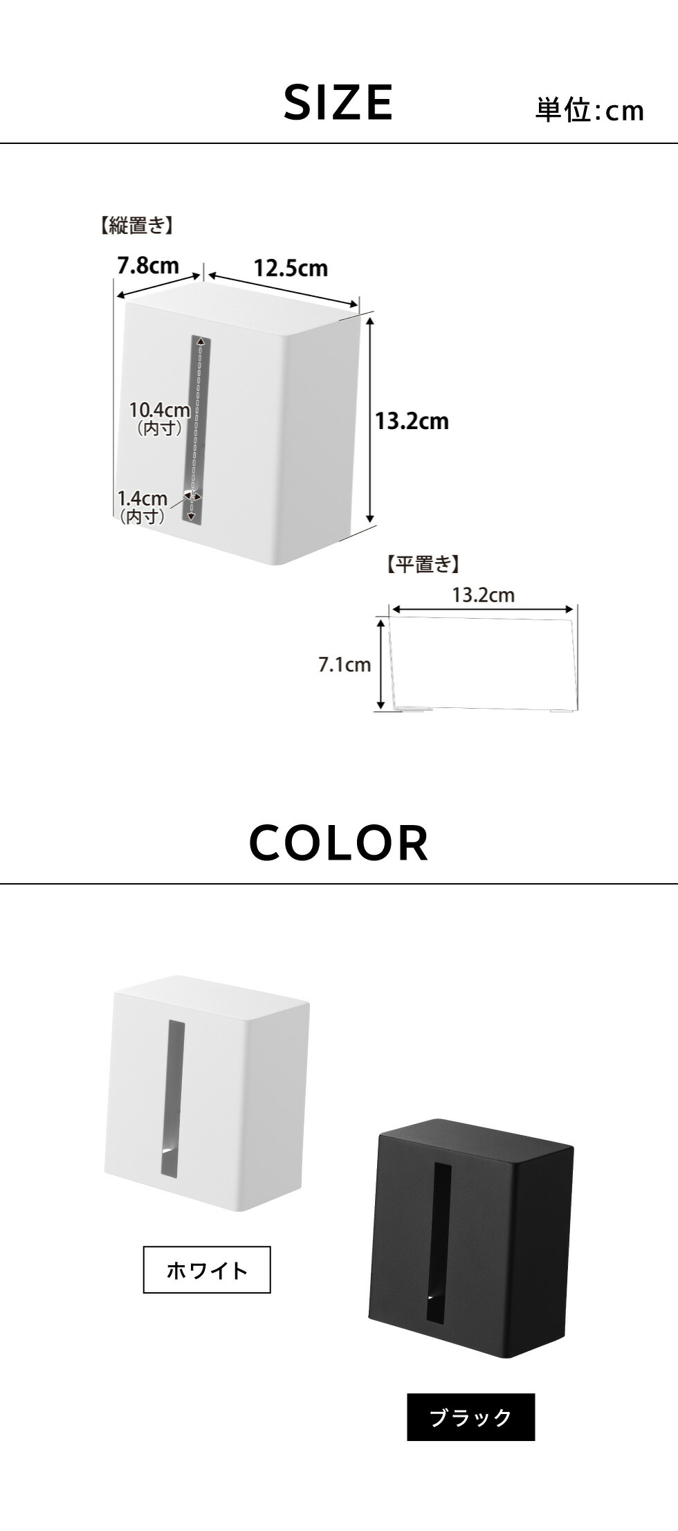 丈夫なスチール製の縦型ハーフティッシュケースです。スリムに立てて使える省スペース設計で、平置きでも使用可能。シンプルな佇まいでインテリアに馴染みます。ハーフサイズのティッシュペーパーに対応。