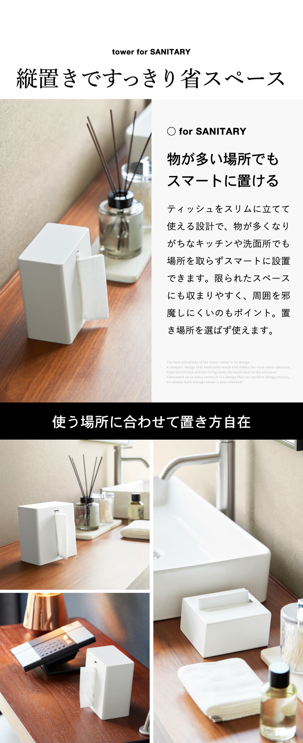 ホワイトとブラックを中心とした飽きのこないモノトーンカラーと、どんなインテリアにもスッと馴染むスタイリッシュなデザイン。そして、とことんシンプルながら、より豊かな暮らしを提案するアイデアがたくさん詰まった、使いやすいアイテムが人気です。無駄を省いたコンパクトなデザインと、シンプルなフォルムが生活スペースを機能的に、美しく整えてくれます。towerのアイテムをライン使いすれば、すっきりとした統一感が生まれ、お洒落でシックな雰囲気を演出します。キッチンやリビング、洗面所から玄関まで揃えたくなるtowerシリーズで、毎日の暮らしを彩る心地よい空間を。