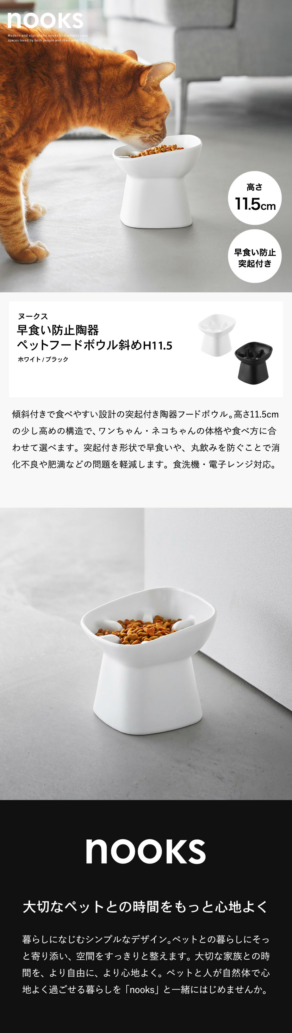 山崎実業 nooks 早食い防止陶器ペットフードボウル ヌークス 斜め H11.5 山崎実業 tower 公式 10557 10558 ホワイト ブラック